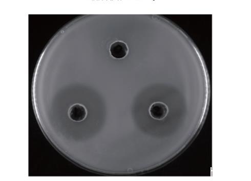 以15株金黄色葡萄球菌为指示菌,采用平板裂解实验检测LysYNP1的活性以及裂菌谱。A、B孔分别加入90 μL LysYNP1和LysJD,C孔加入等量的PBS为阴性对照。结果显示A、B孔能够形成透亮的裂菌圈,C孔不能形成裂菌圈(图6)。裂解酶能够裂解多株MRSA菌株以及患乳腺炎的乳汁中分离的多重耐药金黄色葡萄球菌,裂菌谱如表3所示,结果显示,LysYNP1的裂菌谱比LysJD更广。