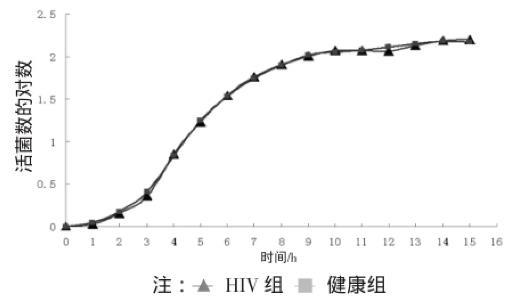 图2血球计数板计数法测定H I V感染者和健康人群白假丝酵母菌生长曲线