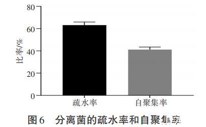 分离菌疏水率和自聚集率测定结果见图6。结果显示,G1的自聚集率为(41.19±2.26)%,疏水率为(63.12±2.78)%,表明该菌株可能具有良好的肠道定植能力。