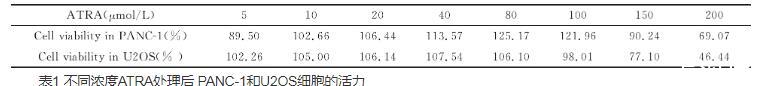 不同浓度的?全反式维甲酸对胰腺癌PANC-1和骨肉瘤U2OS细胞生长影响