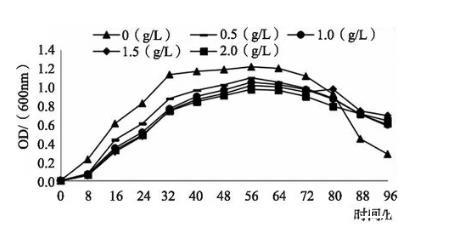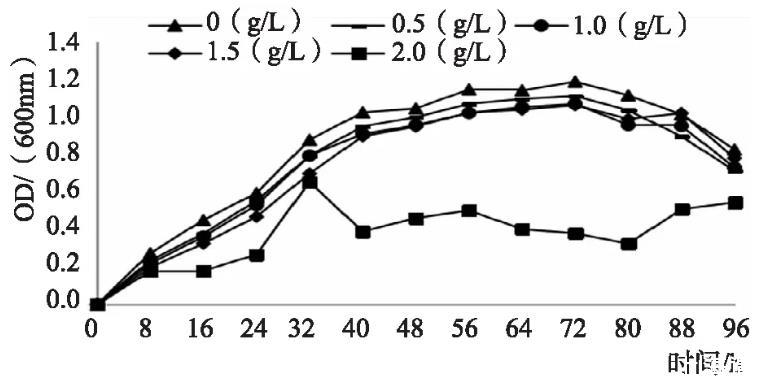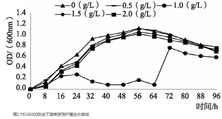 图2 PEG6000胁迫下简单芽孢杆菌生长曲线