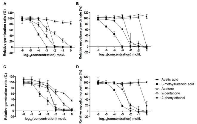研究的结果表明D.hansenii的抗真菌活性是复杂的,并且可能是由几种抑制性VOC的协同和/或相加作用产生的,而不是单一化合物的作用。同样,已证明经证实的生物防治酵母W.anomalus BS91和M.pulcherrima MPR3对包装新鲜水果中的采后病原霉菌的生长抑制是由VOC和CO 2的协同作用引起的。此外抑制镰刀菌属。在植物乳杆菌(以前称为植物乳杆菌)的无细胞上清液中生长)已被证明不是由乳酸菌产生的乳酸单独产生的。