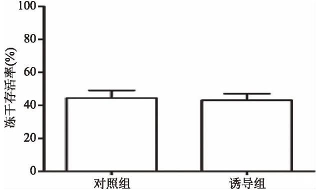 如图7所示,诱导组与对照组相比,其冻干存活率无明显差异,说明温度诱导只影响菌体的生长速率,并不影响菌体的冻干存活率。