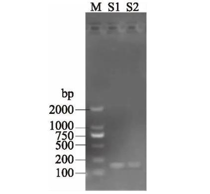 如图2所示鼠李糖乳杆菌cspc基因克隆片段,大小为140 bp,产物经电泳、胶回收、测序、比对,确认为cspc目标基因。