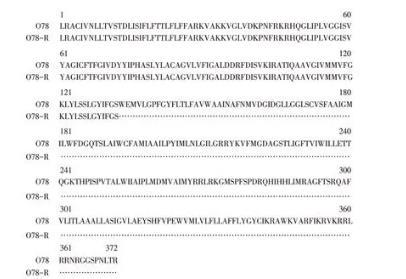 图3敏感菌株O78与抗性菌株O78-R氨基酸序列比对