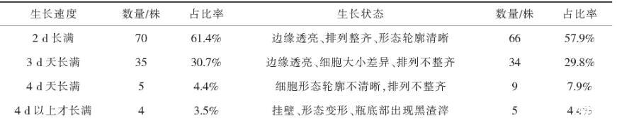 表1 MDCK单克隆细胞生长速度和状态统计表
