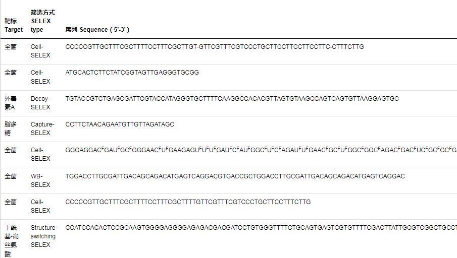 表1铜绿假单胞菌适配体的筛选