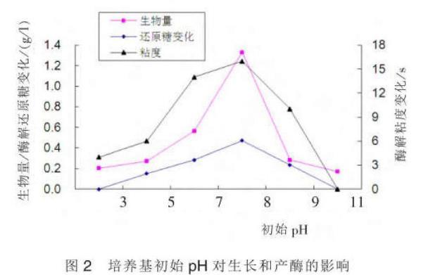 2.4培养基初始pH值对生长和产酶的影响
