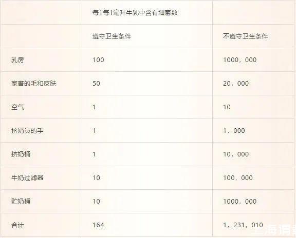 从健康乳牛刚挤出的牛乳,温度一般为37℃,从理论上讲细菌含量并不高,但在一般奶牛场的环境条件下,能够使牛乳腐败的细菌到处皆有,污染的机会及途径很多,如挤奶过程中不讲究卫生,没有做好必要的清洁卫生工作,其每毫升乳中的细菌数可达100万以上,甚至出现无法计数。