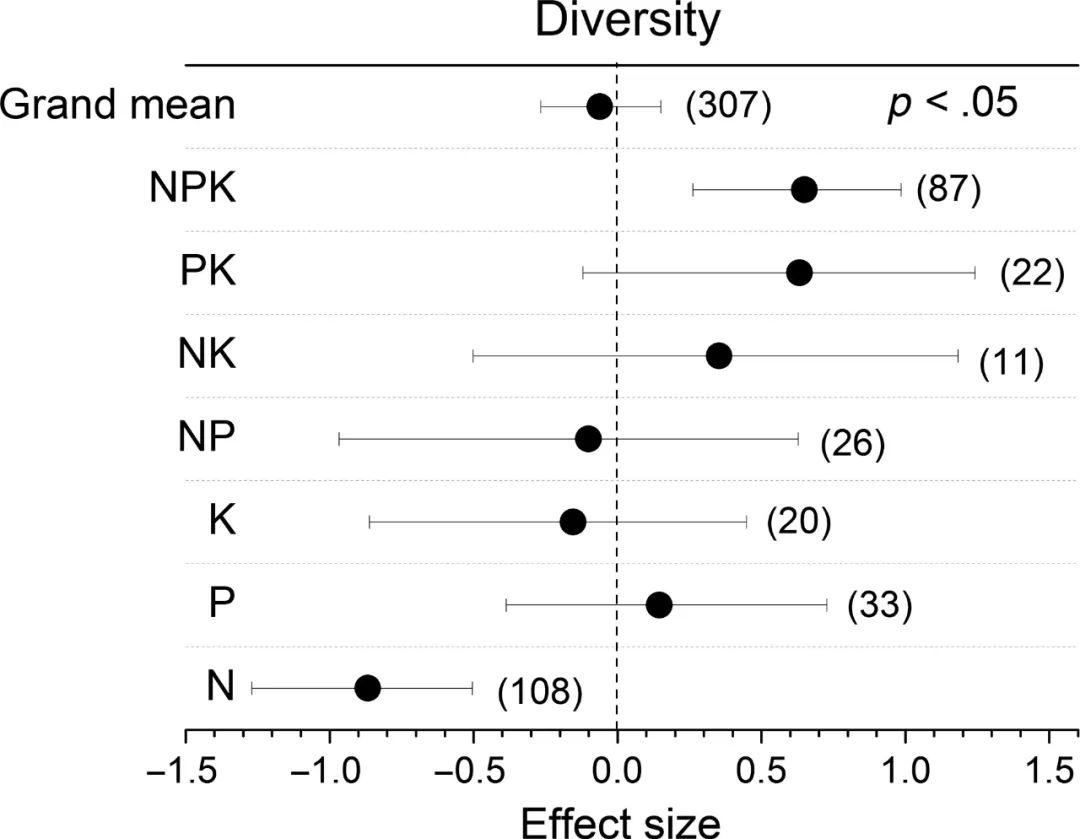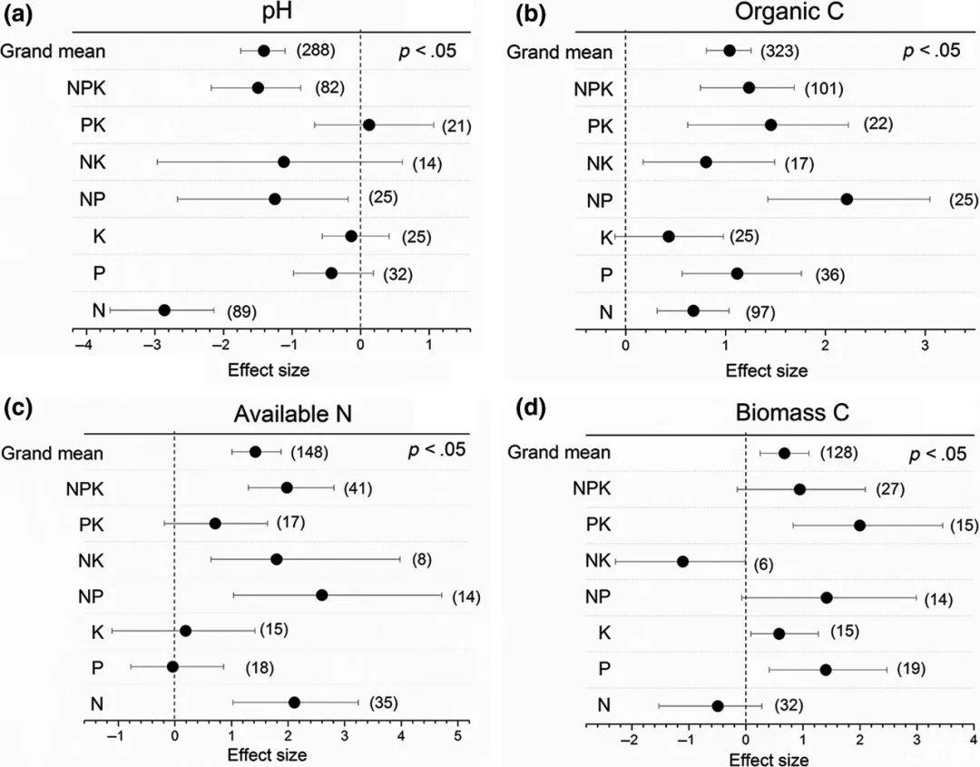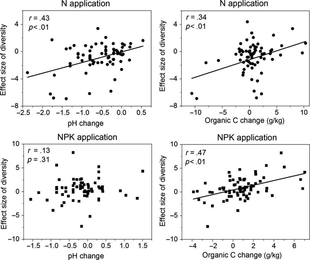 摘要:人为的长期高氮素(N)输入可能导致土壤酸化和作物减产,但地下土壤微生物群落对长期单施氮肥或与磷(P)和钾(K)肥配施的响应尚不清楚。本研究通过汇总全球数据集进行Meta分析,探讨了长期施氮和NPK肥对土壤细菌多样性和群落组成的影响。