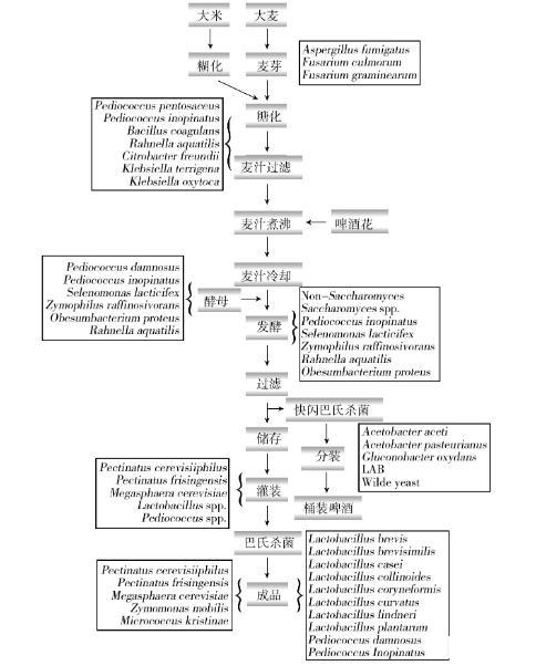 图1啤酒微生物及其在酿造工艺中可能出现的阶段