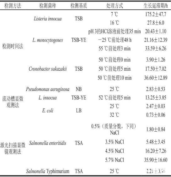 表1可应用于测定食源性致病菌生长延滞期的微生物定量方法