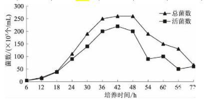 胶红酵母发酵液的制备将胶红酵母种子液按5%分别接种于12瓶红酵母发酵培养基中,28℃、140 r/min条件下培养72 h;期间每隔6 h取出1瓶发酵液,测定胶红酵母活菌数和总菌数。