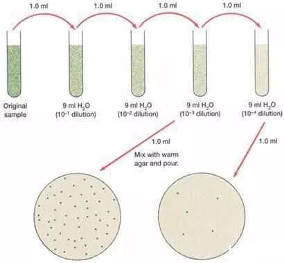 该法是将待接的微生物先放入培养皿中,然后再倒入冷却至45℃左右的固体培养基,迅速轻轻摇匀,这样菌液就达到稀释的目的。待平板凝固之后,置合适温度下培养,就可长出单个的微生物菌落。