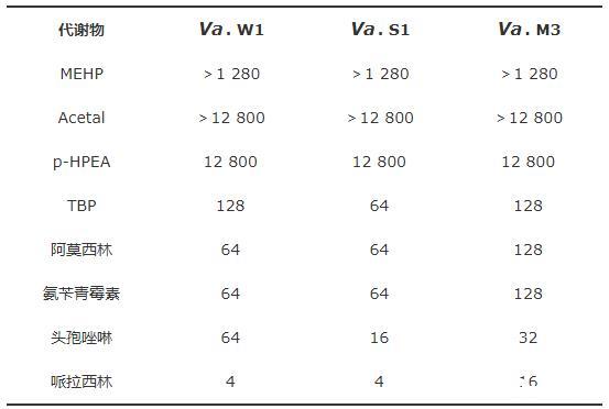 表3优势差异代谢物和抗生素对溶藻弧菌的MIC(μg/mL)