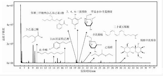 图4 10 g/L裂片石莼3 d水培液的总离子色谱图