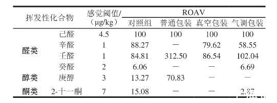 表1不同包装方式下清蒸大黄鱼挥发性风味物质的ROAV