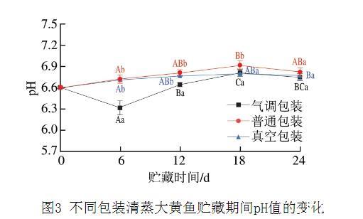 2.3包装方式对清蒸大黄鱼贮藏过程中pH值的影响