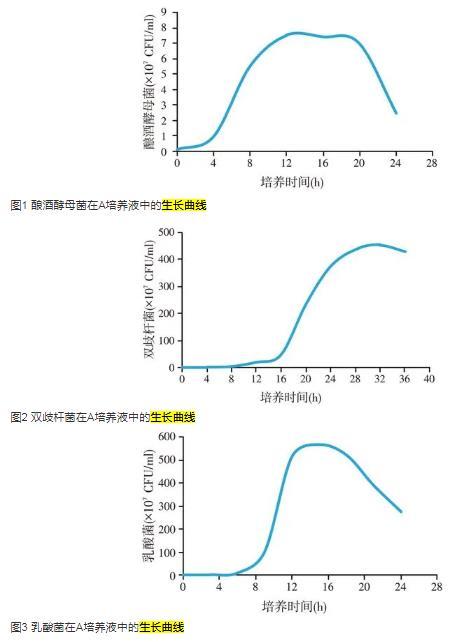 ①挑取酿酒酵母、双歧杆菌和乳酸菌分别接种于A培养液中,摇床震荡过夜培养,以获得处于生长对数期的活化种子液。