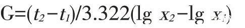 x1、x2——t1、t2时间点分别对应的每毫升培养液中可培养的细胞数量(CFU/ml)。