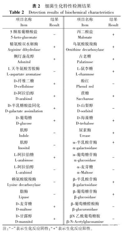 表2细菌生化特性检测结果