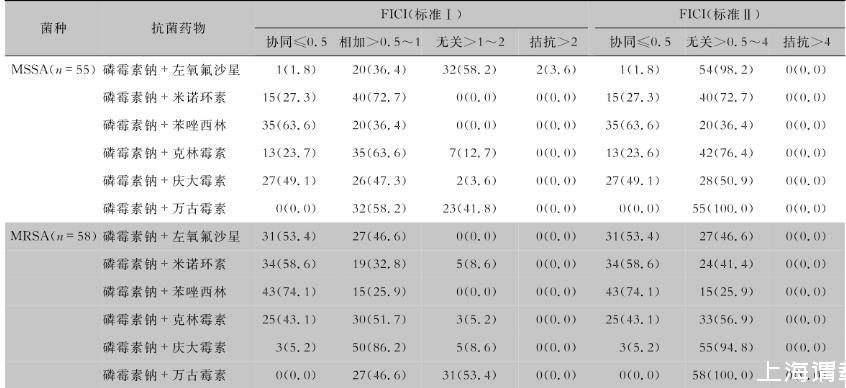 表2磷霉素钠体外联合其他药物对金黄色葡萄球菌的药敏结果[株数(%)]