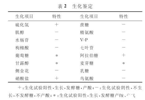 通过纯培养的细菌选择典型菌落接种于8%兔鲜血琼脂固体试管斜面培养基上置于37℃恒温培养箱中培养12~24h,用钩菌环挑选典型单个菌落接种于微量生化鉴定管中,接种完后,微量生化管放于灭菌平皿中切忌要保持水平放置,置于37℃恒温培养箱中,培养24~48h,进行观察,记录结果。