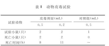 将细菌扩大培养物对小鼠进行腹腔注射后,小鼠全部在12h之内死亡,表中死亡时间为2只小鼠平均死亡时间,具体结果见表1。