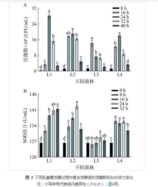 2.2.2不同乳酸菌发酵过程中对复合发酵液活菌数和SOD活力的影响