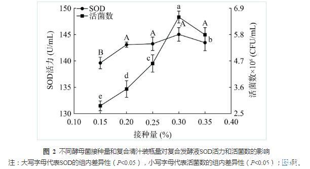 2.1.2不同酵母菌接种量对复合发酵液SOD活力和活菌数的影响