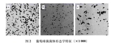 由图2可知,经革兰氏染色后在显微镜下观察,葡萄球菌菌株L2、R2及Z9的菌体细胞均为圆球形,革兰氏阳性,其中菌株L2部分成对生长,菌株R2单个生长,菌株Z9呈不规则堆状排列。