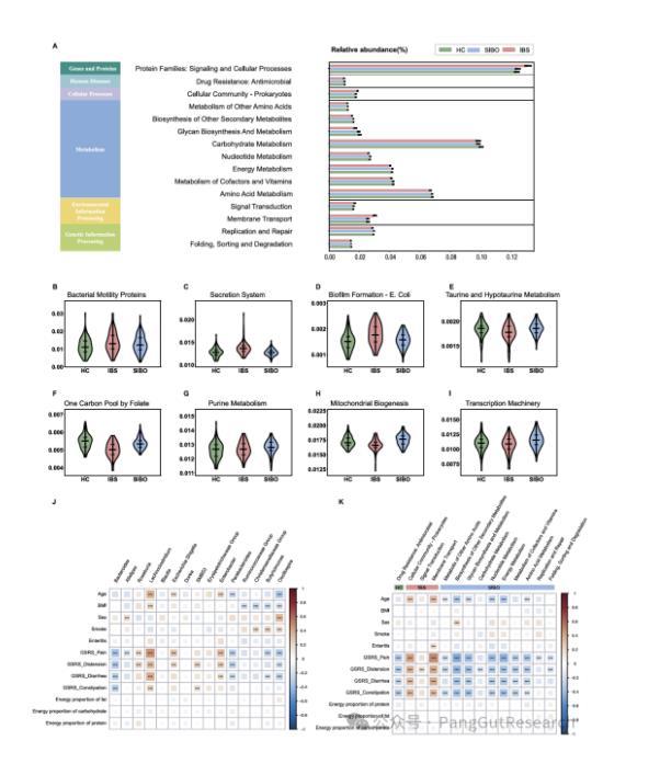 功能差异:IBS患者某些细胞过程和信号通路相关功能增强;SIBO患者多种营养代谢途径功能富集。