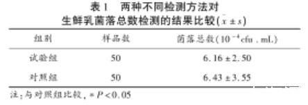 表1两种不同检测方法对生鲜乳菌落总数检测的结果比较
