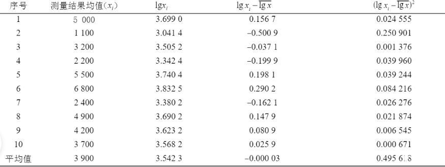 (2)取对数lgxi,计算平均值