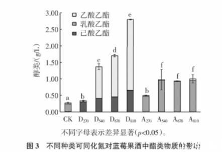 图3不同种类可同化氮对蓝莓果酒中酯类物质的影响