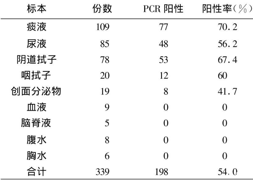 1.2模板液制备挑取纯菌落混匀后置于55℃1 h,煮沸5 min,取出后1000 rpm离心30 s,上清即为扩增的模板液。临床标本处理:尿液、脑脊液、胸水、腹水等液体标本可直接取1ml备用,抗凝的血液直接吸取1 ml备用,拭子类标本应先置拭子于1-2 ml生理盐水中充分洗脱后,吸取1 ml备用。