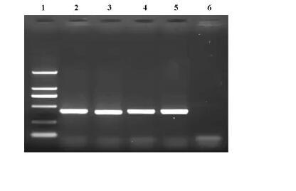 339份临床标本包括痰、尿、咽拭子、血液等,PCR检出结果显示从痰标本中分离出的白色念珠菌最多77株占70.2%,其次是阴道拭子53株占67.4%,具体分布情况见表1,部分标本的PCR电泳图见图1,扩增出目的片段大小386 bp,与预期片段大小一致,其中5号泳带为阳性对照,6号泳带为阴性对照,其他3份标本均为白色念珠菌。