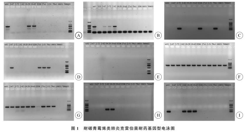 图1耐碳青霉烯类肺炎克雷伯菌耐药基因型电泳图