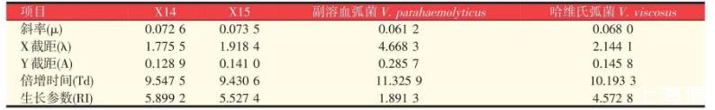 表2两株拮抗菌和两株病原弧菌生长曲线参数