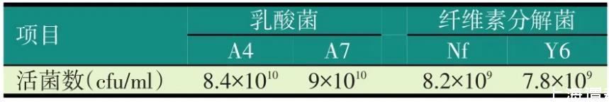 采用本研究室分离得到的4株菌株,分别是高效乳酸菌A4、A7和纤维分解菌Nf、Y6。