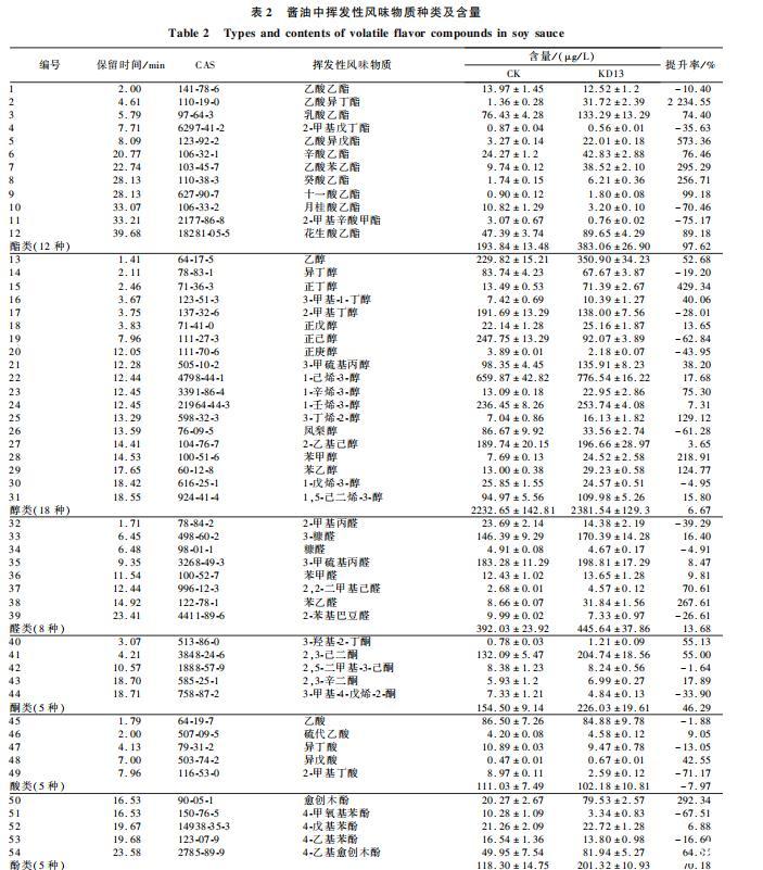 2.3.2添加KD13对酱油挥发性风味物质的影响