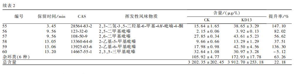 2.3.3添加KD13对酱油挥发性风味物质的影响