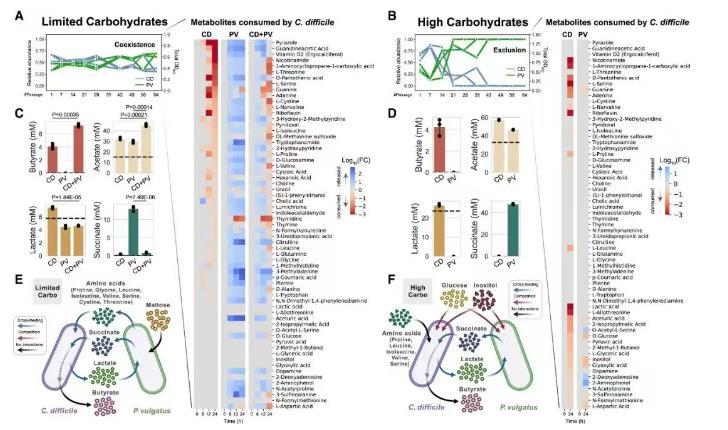 资源受限的环境促进了艰难梭菌与PV的交叉喂养和共存