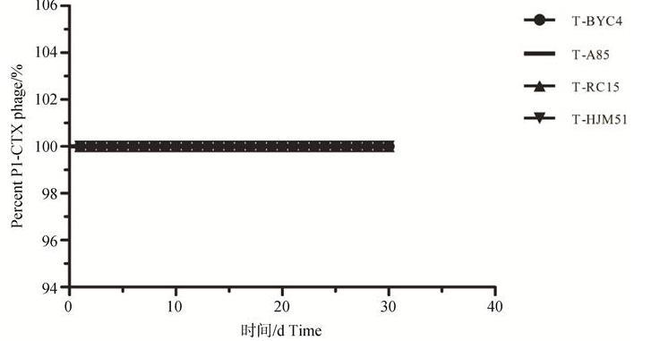 图7 P1-CTX噬菌体-质粒在不同受体宿主菌中稳定性