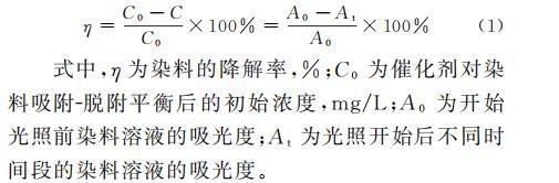 式中,η为染料的降解率,%;C?为催化剂对染料吸附-脱附平衡后的初始浓度,mg/L;A?为开始光照前染料溶液的吸光度;A?为光照开始后不同时间段的染料溶液的吸光度。