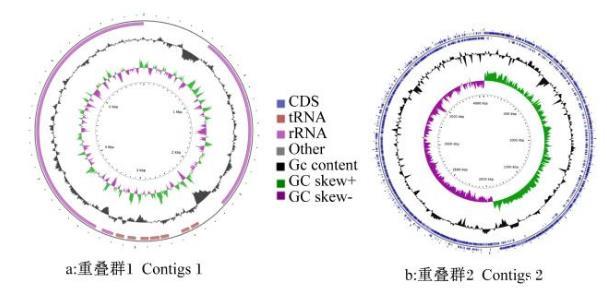 通过对菌株GXUN13068-1进行测序评估和组装,拼接得到菌株GXUN13068-1的基因组环状图谱(图8),该菌株全长4 070 064 bp,有2个重叠群(contigs),GC含量为46.46%,共有3 883个蛋白质编码序列(CDS),30个核糖体RNA(rRNA)、93个转运RNA(tRNA)和1个转运-信使RNA(tmRNA)被注释。