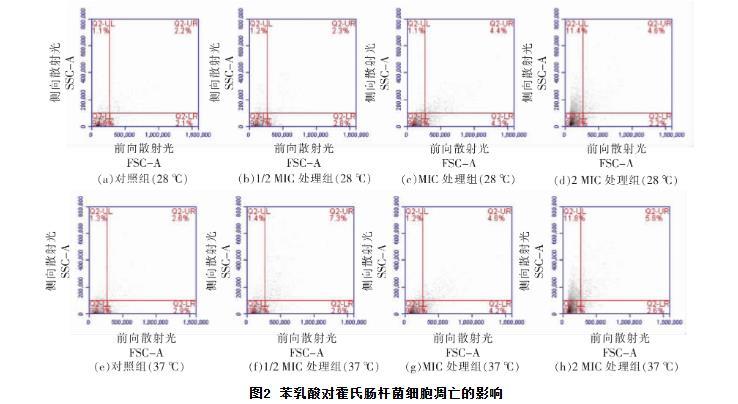 图2 苯乳酸对霍氏肠杆菌细胞凋亡的影响