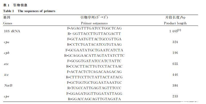 胨胨-亚硫酸盐-环丝氨酸琼脂培养基(TSC),42℃厌氧培养12h,观察菌落形态,挑选圆形黑色菌单落接种于RCM,42℃,180r·min-1培养18h后划线于7%羊血琼脂培养基。观察菌落形态,挑选有溶血环的灰白色单菌落进行革兰染色镜检。
