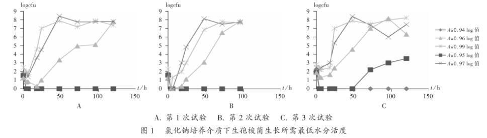 2.1氯化钠培养介质下生孢梭菌所需最低Aw