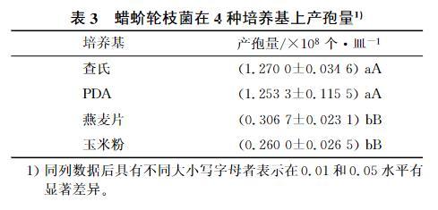 2.2蜡蚧蚧轮枝菌在4种培养基上的产孢量